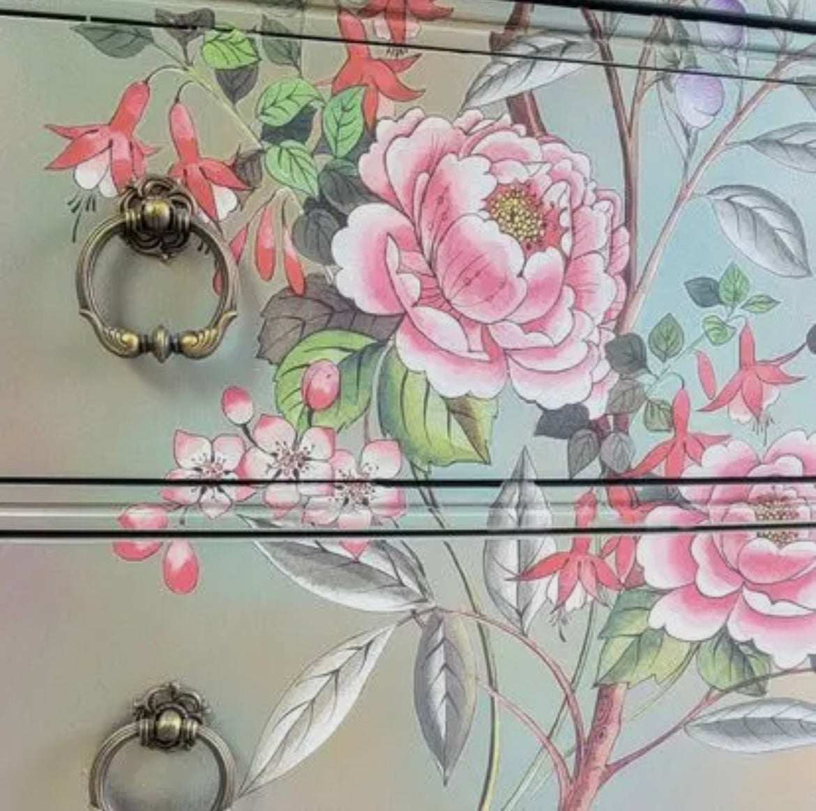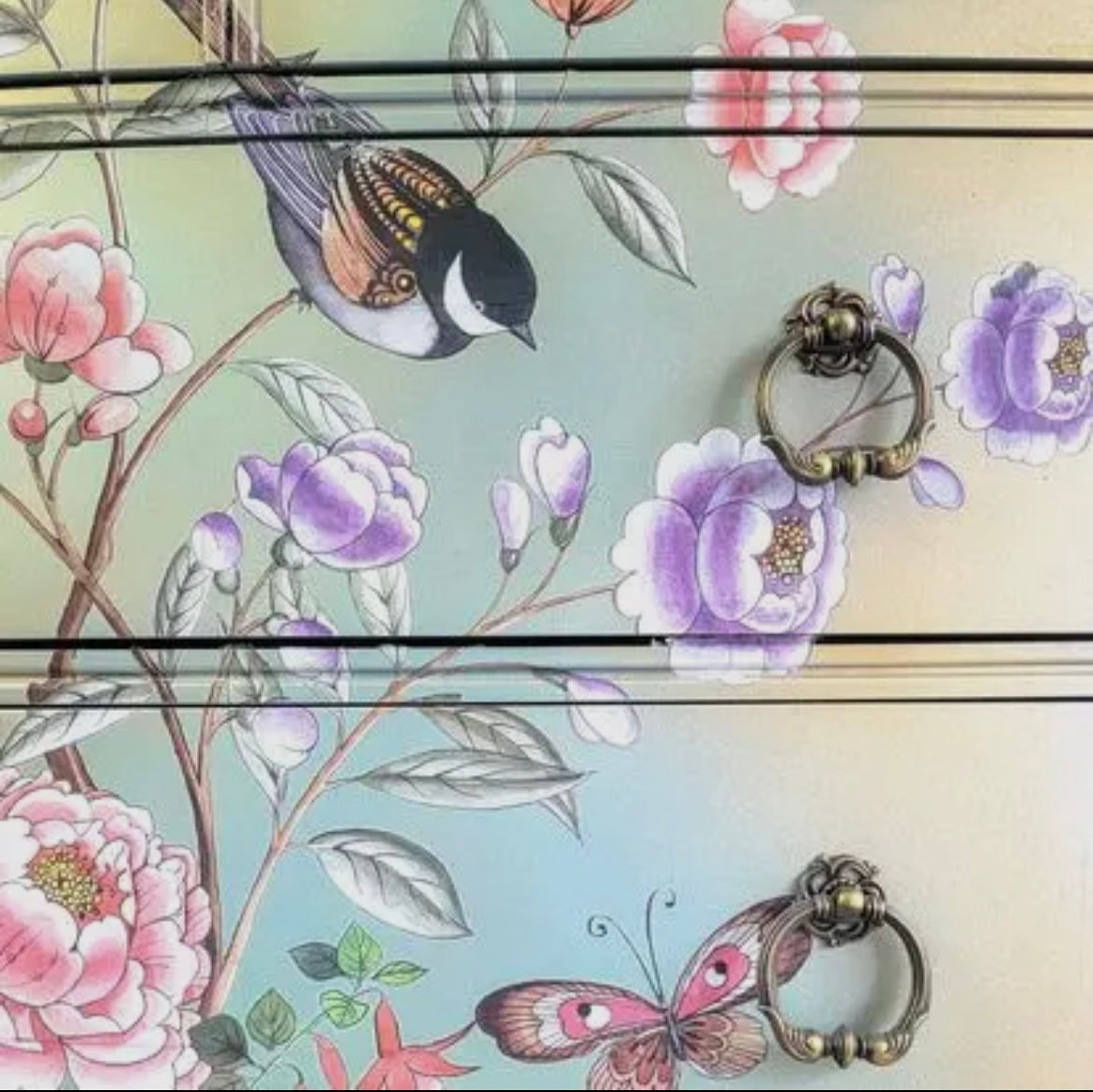 Dessa Decor transfers kan appliceras på en mängd släta ytor, inklusive trä, målade möbler, glas, speglar m.m.