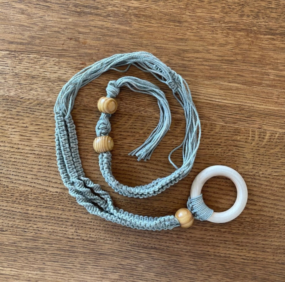 Planthängare i gracilt macramegarn med naturfärgade träpärlor. Handgjord.