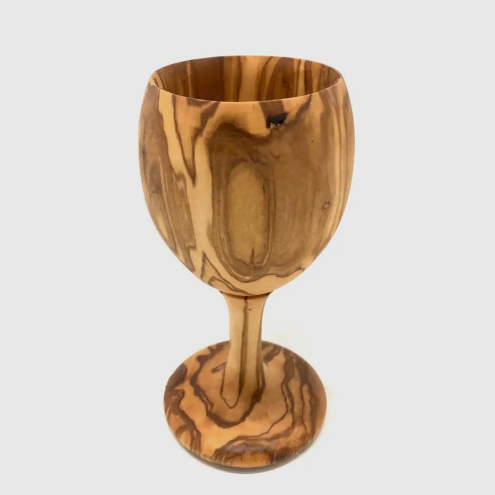 Vacker handgjord vinbägare av olivträ. Olivträ påverkar inte smaken. Bägaren passar även bra för servering av tilltugg som oliver. Bara fantasin sätter gränser!